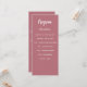 Programa e cartão de menu. Personalize e adicione seu nome, data e menu. fundo rosa dourado, texto branco.