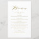 Cartão de menu personalizável com script elegante, tipografia simples e padrão de listras. Este cartão de cardápio é perfeito para qualquer tema de casamento e estação. Personalize adicionando nomes, data e detalhes do menu.