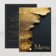 Cartão de Menu Dourado e Preto Elegante com Brilho
