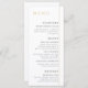 Melhore a experiência de jantar dos seus convidados com este cartão de menu bonito e elegante, com um design minimalista e clássico. Você pode personalizá-lo completamente ajustando as cores para complementar perfeitamente seu esquema de cor de casamento e mostrar suas ofertas de refeições de uma forma impressionante.