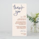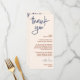 um cartão de cardápio de obrigado 4 x 9 para você e taco bar para sua mesa de casamento