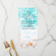 Cartão de Menu Estrela-do-Mar de Praia de Areia Branca Oceano Azul. Itens correspondentes neste design estão disponíveis.