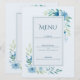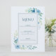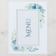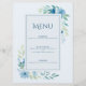 Cartão de Menu Floral Azul Elegante