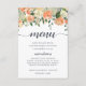 O encantador menu floral de verão exibe suas opções de jantar em caligrafia elegante e letras maiúsculas tradicionais, acentuadas por uma borda superior de flores e folhagens em aquarela pastel em tons de rosa, pêssego e verde musgo. Projetado para combinar com nossa elegante coleção de casamento floral de Midsummer.