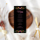 Crie uma experiência de jantar cativante com a nossa "Cartão de Menu de Casamento Floral Fiesta Mexicana Colorida" contra um pano de fundo preto impressionante. Este cardápio mostra flores aquáticas pintadas à mão vibrantes em tons de laranja, vermelho e roxo, incorporando o espírito vivacioso do México. O elegante texto escuro se destaca em relação ao fundo ousado, apresentando suas ofertas de menus curados com sofisticação. Elevem o ambiente da sua recepção de casamento com este cartão de menu chic e festivo, combinando o fascínio visual e a funcionalidade para uma celebração memorável.