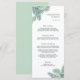 O cardápio de núpcias da ilha mostra seus cursos iniciais, entretenimentos e sobremesas em letras elegantes, com seus nomes e data de casamento moldados por folhas de amêndoa de palma de água tropical em verde vibrante. Coordena-se com nossa coleção de casamento de Folhagem Tropical para o verão, praia e casamentos de destino. Use os campos modelo para adicionar as informações do menu e clique em "Personalizar" para reposicionar os elementos, se necessário. Precisa de ajuda? Entre em contato comigo através do link "Perguntar a este Designer" nesta página.