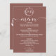 Um simples cartão de cardápio de cardápio falso de folhagem chic monograma terracotta. Fácil de personalizar com seus detalhes. Carteira de cardápio de casamento do moderno boho editável, convite de fotos de wredies, personalizável, letra escrita à mão, simples, elegante. PERSONALIZAÇÃO: se você precisar de personalização de design, entre em contato comigo através do bate-papo; se precisar de informações sobre seu pedido, opções de envio etc., entre em contato direto com o suporte da Zazzle https://help.zazzle.com/hc/en-us/articles/221463567-How-Do-I-Contact-Zazzle-Customer-Support-