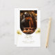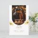 Cartões De Menu Foto De Casamento Floral Da Hora Do Ouro Grace. Encaixe-se em uma jornada culinária com 'A Graça da Hora do Ouro', uma coleção de elegantes Cartões de Menu Foto Floral. Na frente, uma foto cativante do casal feliz compartilhando uma refeição põe a cena, acompanhada pela frase encantadora 'O amor está em cada mordida!' e os nomes dos casais, data do casamento e localização na tipografia elegante. A design requintada é completada com um toque de elegância moderna contra um pano de fundo branco intocado. Ao contrário, o cardápio se desdobra, mostrando as delícias culinárias do dia, de início a sobremesa, em tipografia elegante. Estes cartões de menu são uma combinação perfeita de romance clássico e estilo moderno, adicionando um toque de sofisticação à sua recepção de casamento.