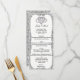 Realce a decoração adicionando um cartão de menu. Enquanto seus convidados aguardam a entrada da noiva e do noivo ou a apresentação do convidado de honra, eles podem encontrar um cartão de menu em seu cenário, acrescenta um toque agradável. Personalize e crie o menu adicionando e alterando o texto nos campos fornecidos. Você pode alterar o estilo, o tamanho e a cor da fonte, o tipo de papel.