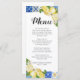 Cartão de menu italiano Lemon Azulejo azul