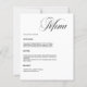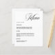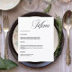 Um fundo branco. Personalize e adicione seus nomes, data e menu. Texto preto. 1 folha = 1 menu impresso borda a borda.