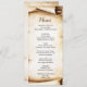 Este cartão de cardápio de janto rústico de rolagem é perfeito para um casamento simples. Este design apresenta os pergaminhos de papel castanho e claro pintados à mão, evocando a graça. Este menu pode ser usado para recepção de casamento, janto de ensaio, chá de panela ou qualquer evento.