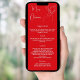 Cartão de janto da festa de Natal. Personalize e adicione um nome/evento, data e menu. Um fundo vermelho, texto branco. Decorado com uma rena abstrato moderna. Texto: Feliz Natal