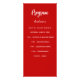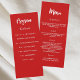 Programa e cartão de menu. Personalize e adicione seu nome, data e menu. Fundo vermelho, texto branco.