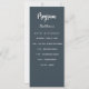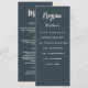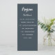 Programa e cartão de menu. Personalize e adicione seu nome, data e menu. Fundo colorido de cinza de carvão, texto branco.