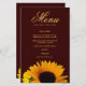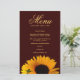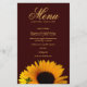 Este cartão de cardápio floral, com uma foto de girassol, é perfeito para qualquer evento de outono, como casamentos, noivas ou chás de fraldas. O texto adicional é impresso no verso para atender às suas necessidades.