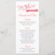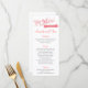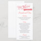Cartão de Menu com tema "Love Story" em Coral com sotaques de Cinza.