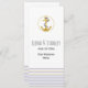 Dourado, âncora de marinho e cartão de menu náutico de listras. Esta elegante e moderna design de casamento de praia apresenta faixas horizontais em azul marinho e ouro que cobrir sua base e uma âncora dourada em um círculo branco com contorno dourado na parte superior.