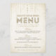Este lindo design de cartão de menu da The Spotted Olive™ apresenta um belo fundo dourado suave com uma imagem de gemas cintilantes fluindo do topo e a palavra "Menu" tipografada de forma estilosa, apresentando a palavra "Shower" preenchida com uma imagem de glitter dourado. POR FAVOR, OBSERVE: ESTE DESIGN APRESENTA APENAS UMA IMAGEM IMPRESSA DE GLITTER; NÃO HÁ GLITTER FÍSICO USADO OU INCLUSO; NÃO HÁ EMBELEZAMENTOS. Copyright 2013-Presente | The Spotted Olive™ | Todos os Direitos Reservados