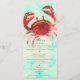 Cartão de Menu Personalizado de Noivado Elegante de Caranguejo Vermelho na Praia. Itens correspondentes neste design estão disponíveis.