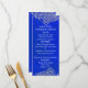 Um cartão de cardápio elegante, ao estilo indiano ou árabe, com filigre prateado estilizado ou manchas de henna, em um fundo azul real e azul-da-noite. É claro que também se pode utilizar este cartão noutras ocasiões ou se se tem um restaurante indiano ou árabe.