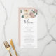 Cartão de noiva floral elegante com uma borda superior de rosas brancas-creme pintadas, orquídeas cor-de-rosa-pincel e folhas verdes e folhagem. Personalize os menus do casamento floral adicionando seus nomes, data do casamento e detalhes do menu do casamento. Projetado para coordenar com nossa coleção de casamento de Rosas de Aquarela e Orquídeas.