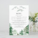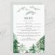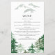 Cartão de menu de madeira personalizável com ilustrações de cor d'água de árvores, montanhas e correspondente papel verde. Este cardápio da floresta russa é perfeito para primavera e casamentos outono, chás de panela, chás de fraldas, aniversários e eventos semelhantes. Personalize adicionando nomes e detalhes do menu.