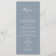 Cartão de Menu Simples de Casamento Azul com Dusty Caligrafia