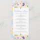 Buquê de primavera com rosas cor-de-rosa, híbridos azuis, flores roxas e amarelas com fundo azul de cor d'água. Escrita moderna e elegante com elementos delicados de espiral. Os tons pastéis macios de amarelo, azul e rosa são as principais cores desta suíte de casamento. Personalize o texto, adicione informações de casamento e faça deste convite seu.