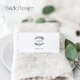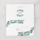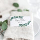 O cartão botânico chic ou o design de cartão de escolta apresenta uma borda superior e inferior de verde-aquarela e folhas de eucaliptos. Espaço fornecido para nome de convidado e número da tabela. Cartões inversos para revelar uma imagem botânica verde correspondente com suas iniciais e data do casamento. Cartões dobrados são verdes em florestas sólidas no dentro. Projetado para combinar nosso casamento e a coleção de eventos do Abundant Foliage.