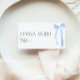 Estes Cartões de Lugar são uma bela decoração para o seu Chá de panela temático "Ela é Casando" com arcos azuis empoeirados. O convite de correspondência, as placas de compartimento e os sinais também estão disponíveis nesta coleção.