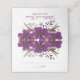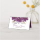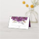 Um design de placa de lugar bonito com flores de aquarela roxas vibrantes melhorou as oscilações aleatórias de brilho dourado.