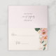 Este moderno e boêmio cartão de lugar de mesa dobrado para chá de panela com tema floral rosa e pêssego e champanhe é perfeito para qualquer pessoa que deseje realizar um chá de panela comemorativo brindando à noiva.