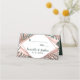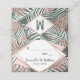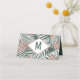 Folhas cor-de-rosa, verde, branca e rosa de ouro, imprimidas a preto, de verão, tropicais e elegantes palmeiras, num fundo verde plantado, com recortes de diamantes de rosa impressos a preto geométrico, cartões de lugar. Este design clássico e sofisticado é perfeito para qualquer evento de na moda e tendências, incluindo casamentos e ocasiões cotidianas. Personalize com sua própria mensagem na frente, assim como um monograma personalizado inicial no verso. Todas as impressão de fotos.