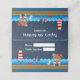 Este cartão de lugar bonito e divertido apresenta um urso marinheiro náutico num convés de madeira com uma gaivota e um caranguejo. Ao fundo há um farol vermelho e branco, um pássaro giro em um veleiro, ondas oceânicas e um céu azul marinho estrelado à noite. O texto combina fontes em negrito e sem serifa para uma aparência na moda e moderna. Isto é perfeito para uma festa de aniversário temática náutica.