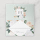 O cartão floral ou design de cartão de mesa do Boho Chic apresenta uma borda geométrica de folhagem de cor d'água e flores em tons de pêssego pastel inspirados no deserto, verde-sábio, marfim e branco. Espaço fornecido para nome de convidado e número da tabela. Cartões inversos para revelar um quadro floral correspondente com suas iniciais e dentro de data de casamento. Projetado para combinar o casamento e a coleção de eventos do Boho Blooms.