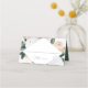 O cartão floral ou design de cartão de mesa do Boho Chic apresenta uma borda geométrica de folhagem de cor d'água e flores em tons de pêssego pastel inspirados no deserto, verde-sábio, marfim e branco. Espaço fornecido para nome de convidado e número da tabela. Cartões inversos para revelar um quadro floral correspondente com suas iniciais e dentro de data de casamento. Projetado para combinar o casamento e a coleção de eventos do Boho Blooms.