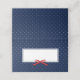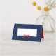 Esta placa moderna de tenda clássica apresenta uma fita vermelha-chic em um retângulo de borda azul contra um fundo de bolinhas azul e branco na frente/fora e um dentro vermelho sólido que você pode remover ou manter. É um cartão de lugar versátil que você pode usar para qualquer evento como casamentos, festas, chás de fraldas, chás de panela ou até mesmo para suas reuniões e conferências. Este cartão é fácil de personalizar; para adicionar texto, clique no botão "Personalizar". *Observe que a Marca d'água Zazzle que aparece na visualização de zoom não aparecerá no produto impresso final © Rosewood e Citrus
