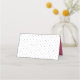 Essa placa moderna de tenda clássica apresenta uma fita rosa-chic em um retângulo de borda preta contra um fundo de bolinhas preto e branco na frente/fora e um dentro cor-de-rosa sólido. É um cartão de lugar versátil que você pode usar para qualquer evento como casamentos, festas, chás de fraldas, chás de panela ou até mesmo para suas reuniões e conferências. Este cartão é fácil de personalizar; para adicionar texto, clique no botão "Personalizar". *Observe que a Marca d'água Zazzle que aparece na visualização de zoom não aparecerá no produto impresso final © Rosewood e Citrus