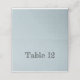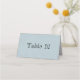 Insira o número da tabela a ser impressa ou manuscreva o número nessas placas de mesa pálidas, azuis e brancas, pontilhadas à mão.