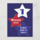 Estrelas coloridas vermelhas, brancas e azuis com um fundo de listras. Cartão de Mesa Bunco #1 para quatro mesas. Ajude seus convidados a se deslocarem de mesa em mesa com cartões de mesa Bunco. Ótimo para os Bunco's de julho e maio que celebram os temas do Dia da Independência e do Dia da Memória. Procure diferentes estilos em www.zazzle.com/artinspired. Cartão #1 de 4.