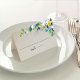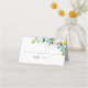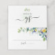 Um cartão de casamento radiante e colorido, com uma bela coloração aquosa folhagem botânica verde e folhas de eucalipto e elegantes flores brancas e ensolaradas. Mande seus convidados para seus assentos em estilo com este elegante cartão de lugar de casamento amarelo floral, branco e azul. Apresentando um sofisticado design adornado com delicados florais amarelos, florais brancos e sofisticados sotaques azuis, este cartão de lugar exude romance e charme de eterno. Os refinados detalhes de tipografia e aquarela criam uma estética fresca e na moda, perfeita para casamentos de primavera e verão. Ideal para as comemorações do jardim, da praia ou do campo, estas cartas de lugar maravilhosamente projetadas adicionam um toque personalizado e elegante à sua decoração de mesa de recepção.