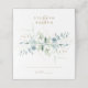 Este cartão de casamento apresenta cor d'água, eucalipto, verde botânico e folhas de ouro com o nome do casal no verso.