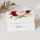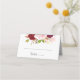 Este clássico cartão de casamento preto e burgundy tropical é perfeito para um casamento rústico. O design de marsala artístico bordo apresenta rosas de aquarela, verdes, cor-de-rosa, burgundy e blush, combinados com verde, bem arrumados num buquê de flores gracioso e radiante. Personalize a parte de trás do cartão de lugar com os nomes da noiva e do noivo e a data.