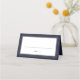 Linhas geométricas elegantes enquadram os nomes dos seus convidados com os seus nomes personalizados e data especial definidos em tipografia clássica no verso deste cartão de lugar de casamento azul marinho e dourado. Concebido por Thisisnotme©