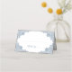 Cartões de mesa de casamento azuis e poeirentos, ou cartões de lugar com um elegante lugar floral.