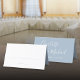 Com nomes de estilo de assinatura, este cartão de lugar azul empoeirado elegante pode ser personalizado com suas informações em letras brancas elegantes. Projetado por Thisisnotme