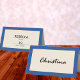 Crie seus próprios cartões de casamento dobrados por Marselha Bleu com ou sem linhas para o nome, número da tabela e texto personalizado no verso. Fácil de personalizar, esses cartões personalizados de escolta de casamento são um tom brilhante de azul marinho com um bloco de som na frente com linhas opcionais para nomes de convidados e números de mesas. A parte de trás de cada carta personalizada de casamento tem um texto branco onde você pode adicionar os nomes da noiva e do noivo e a data do casamento ou uma simples mensagem de obrigado.