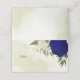 Belo cartão de casamento com flores azuis e brancas reais e folhas verdes Os detalhes da brilha do ouro são simulados. PARA MAIS PRODUTOS CORRESPONDENTES, clique na coleção acima ou entre em contato comigo