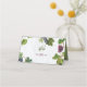 Um belo design com uvas rupestres e folhas de vinhedo no estilo mediterrânico, uma parede branca de lavagem da ilha grega. Um elegante cartão de lugar gráfico de casamento vintage perfeito para casamentos do estilo ilha grega, italiano e mediterrânico. Os convites de casamento e outros artigos de papelaria também estão disponíveis.